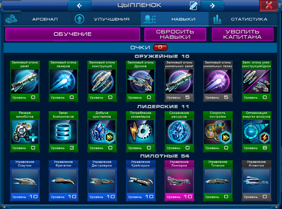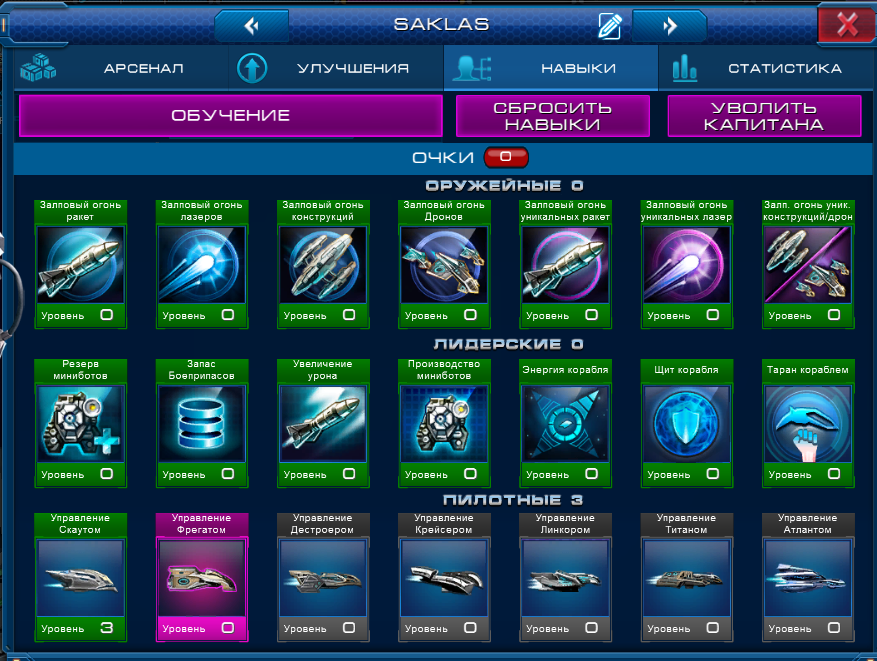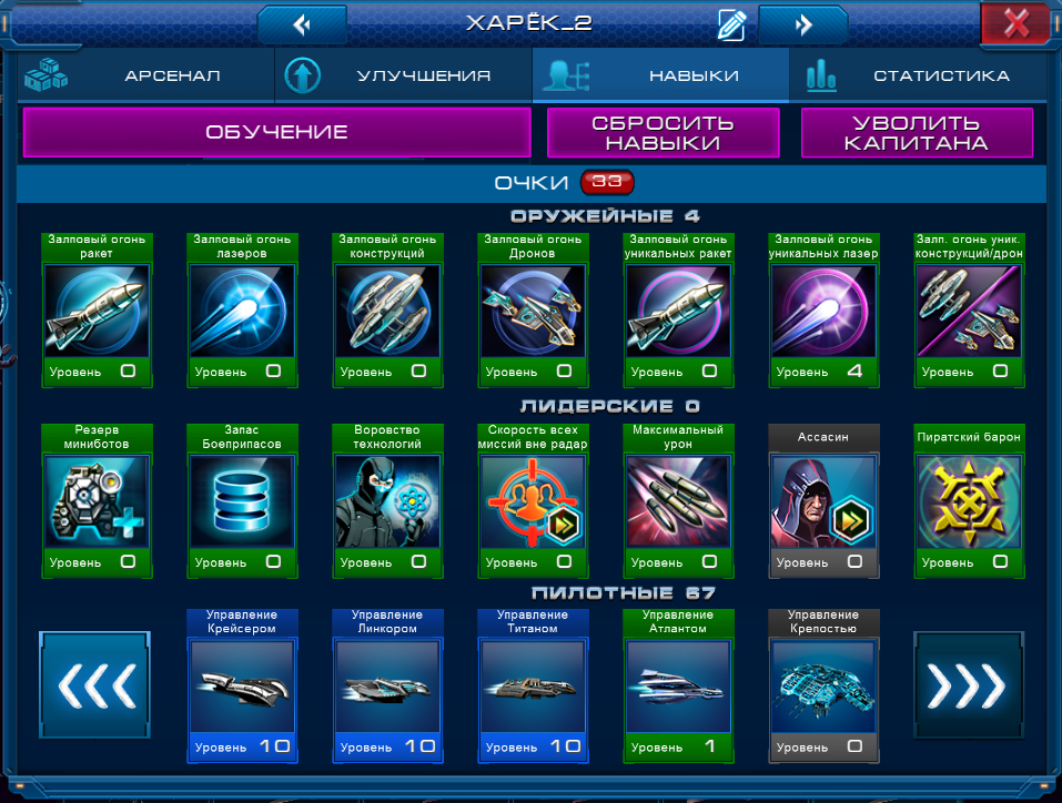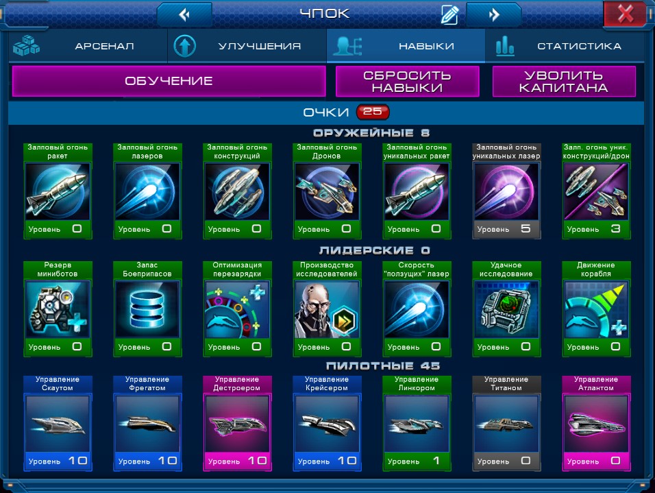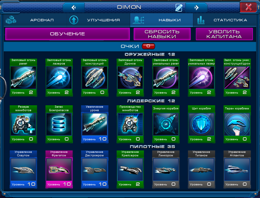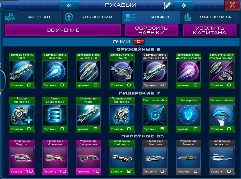 1) Сбросить Навыки Капитана. В этом случае вы получите нераспределенные очки навыков по 2 на уровень. После сброса распределить очки до нужного вам Корабля и подать заявку на участие в этой номинации. Недостаток этого способа в том, что дополнительные очки навыков просто исчезнут. Для их возврата (после Конкурса) придется увольнять Капитана и нанимать нового.