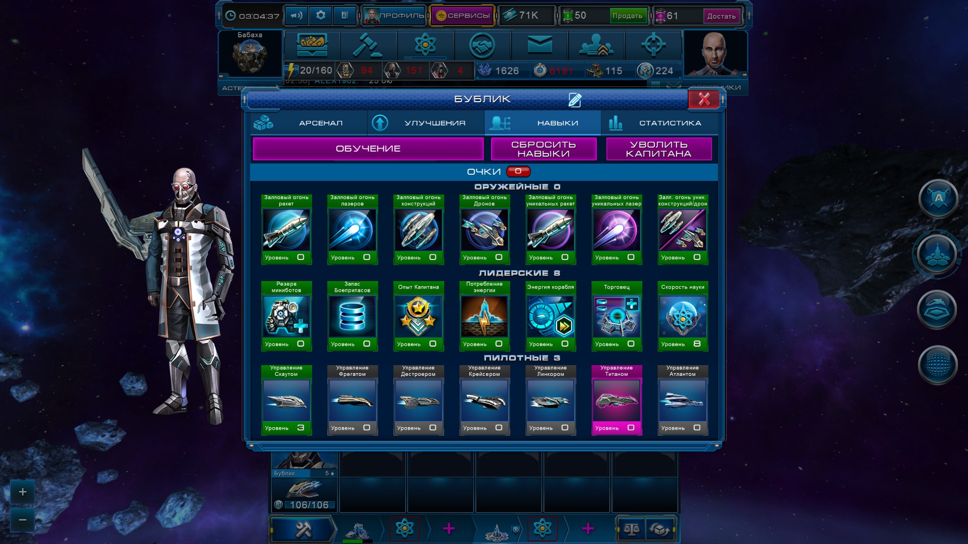 2) Уволить и нанять нового Капитана, при росте его уровней распределять 2 очка Навыка. Лишнее одно очко навыка оставлять нераспределенным. После Конкурса можно будет их распределить. Вырастить Капитана до нужного Корабля и подать заявку на участие в этой номинации.