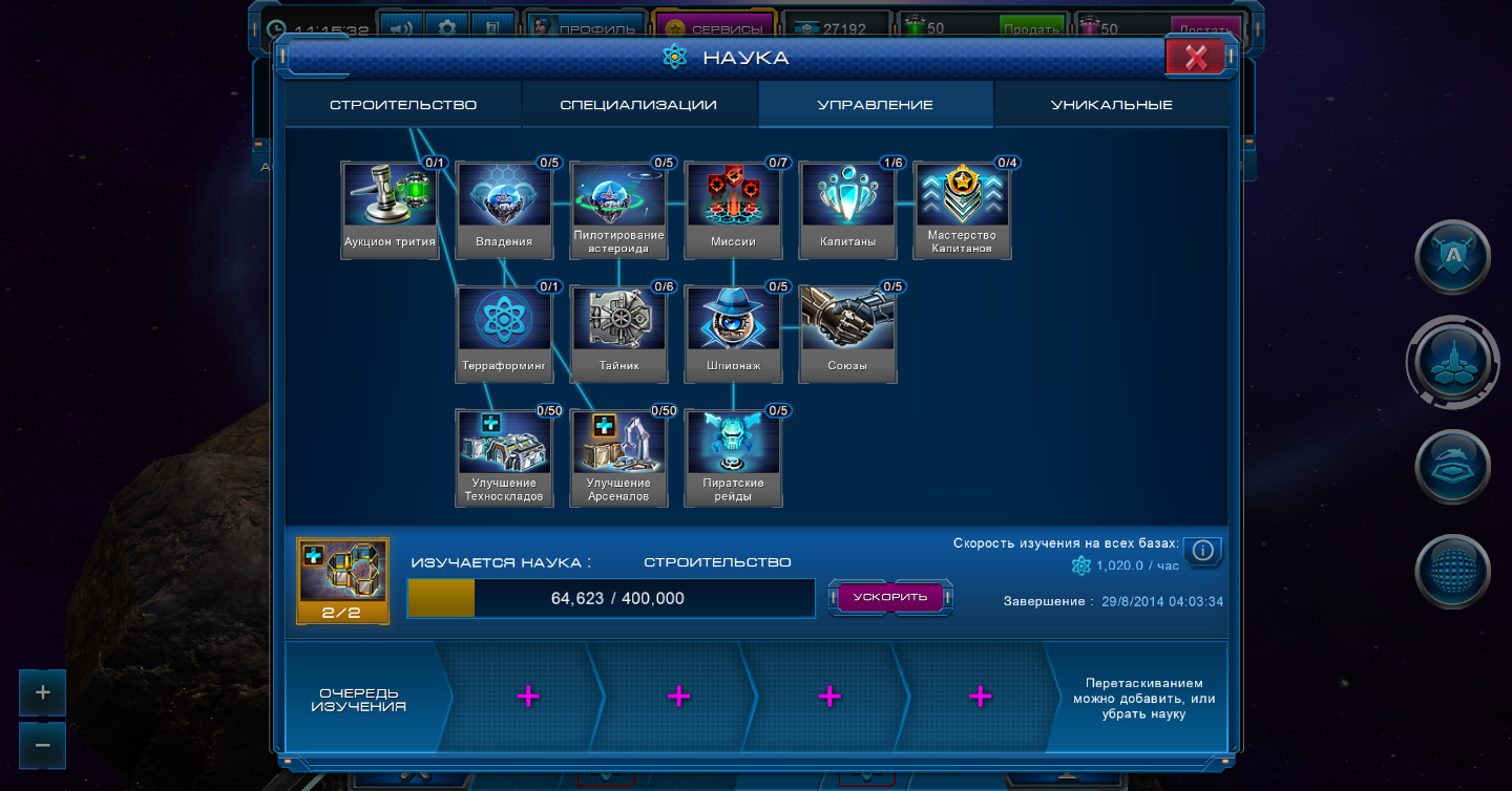 Ясно. То есть исследования / застройка / астрорынок будут доступны.