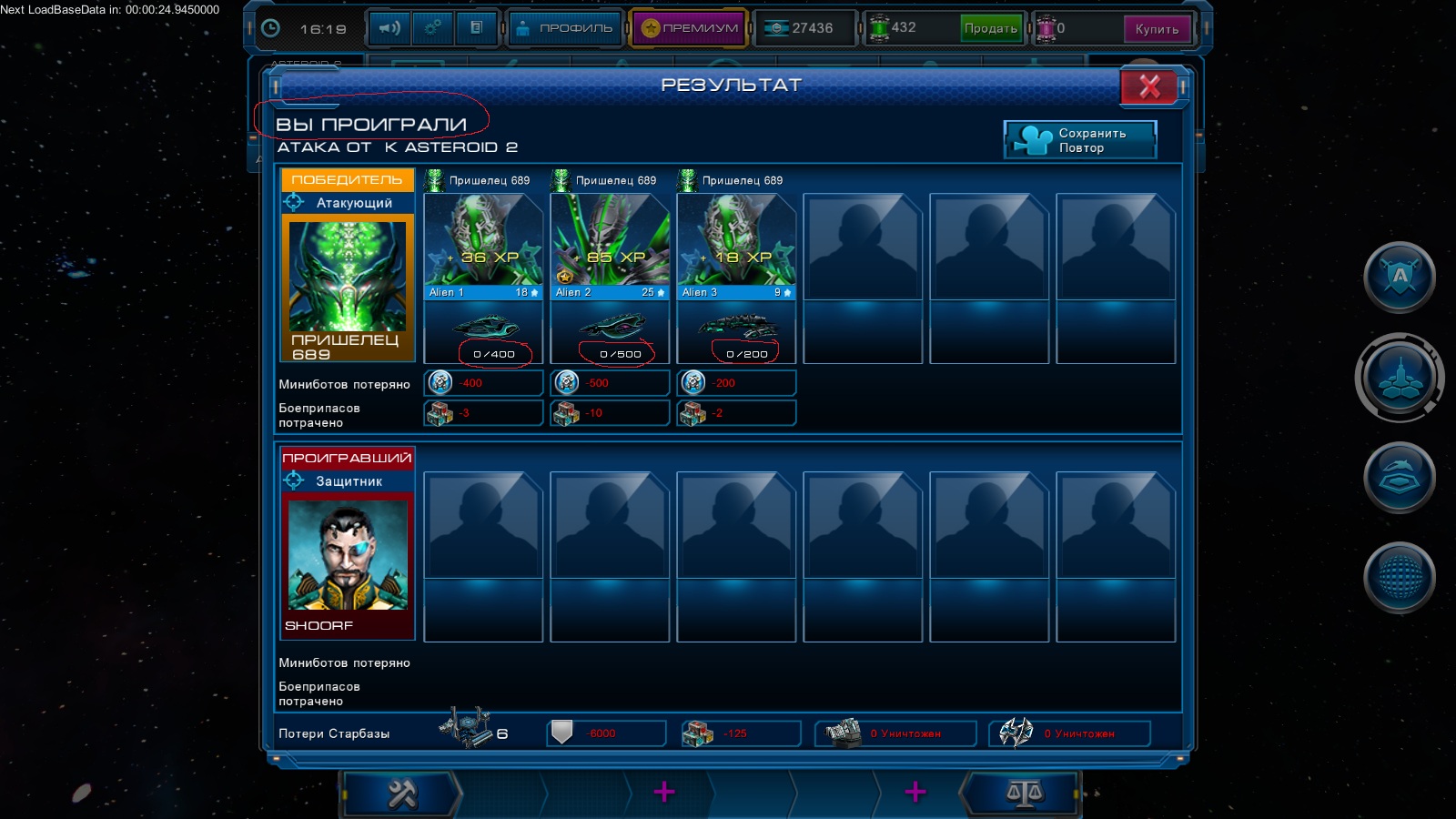 хахах тоже самое вот тока 5 подряд и разделяло только 2 минуты ) то есть за 2 мин надо было пришельца завалить и следующего сразу валить )) у пришельца причем с вместимостью доп бое припасов перебор написано 100 мах а на самом деле 170-190 просто кредиты уходят с кристаллами в некуда так как надо же для 2 пухи лазеры делать вообщем веселуха :lol: а вот ещё прикол захватил астеройд и через 18-20 дней чтоле он развалится и для того чтоб это не произошло придумали кнопку продлить жизнь астероиду всего лишь за 100 дейтерия мдя веселуха)) :lol: :lol:
