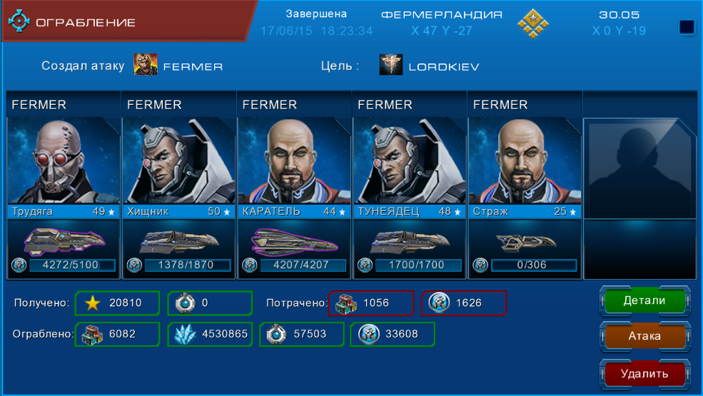 Грабёж лорда LORDKIEV Ограблено : 6082 боеприпасов, 4 530 865 кристаллов, 57503 микрочипов, 33 608 миниботов