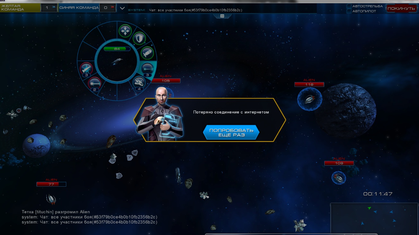 Если бы были проблемы с интернетом, я бы не писал. Все остальное прекрасно при этом работает, даже есть возможность покинуть бой. Правда вернутся в него не получается. Еще заметил странные совпадения, вылетает табличка, одновременно не грузиться сайт астролордов в браузере.